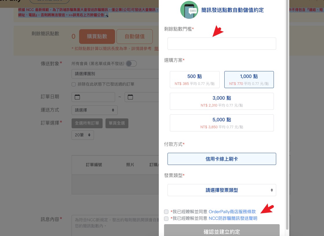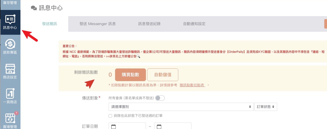 歡迎開始設定 OrderPally全方位社群開店系統-簡訊點數自動儲值設定!